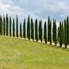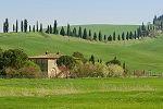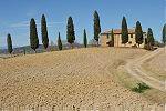 La Toscane comme on en rêve ! Paysages ondulants, alignements de cyprès, fermes et villages au sommet des collines...