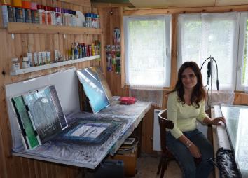 Nathalie et Raymond pratiquent la gravure sur verre.
